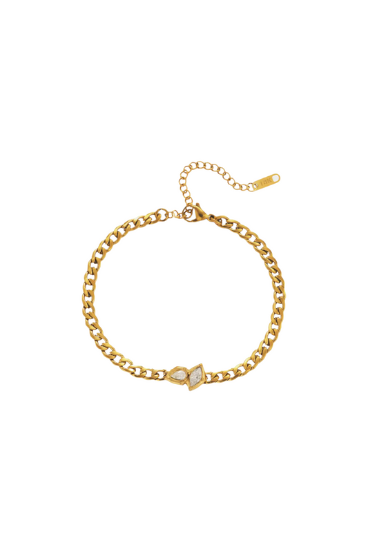 Benoîte - Gold Double Diamond Cluster Curb Bracelet