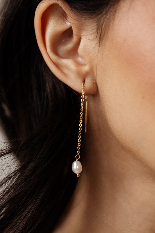 Lola - Gold Freshwater Pearl Rectangle Huggie Earrings