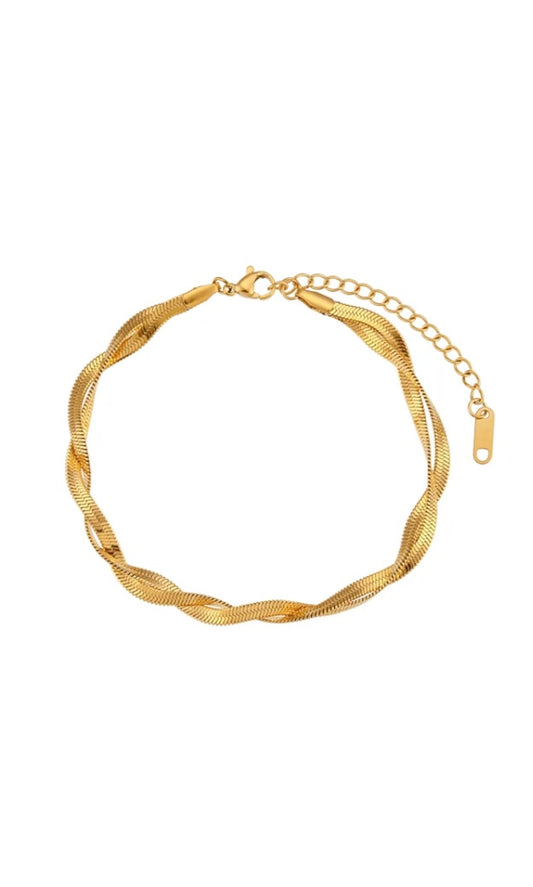 Nami - Gold Double Layer Twisted Herringbone Snake Chain Bracelet