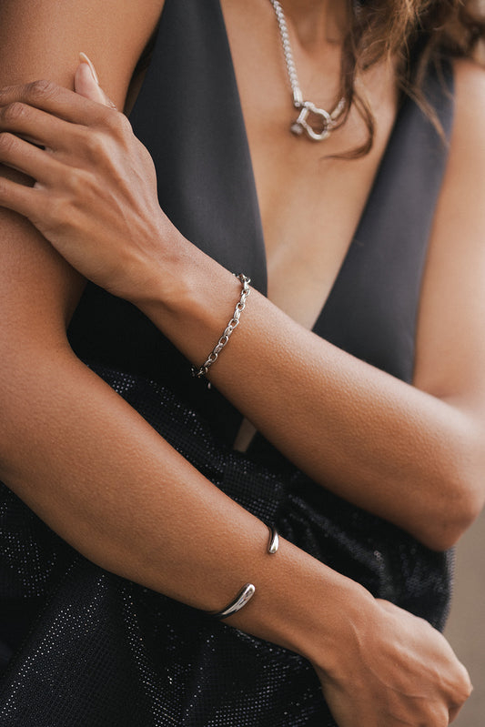 Vienna - Silver Coffee Bean Link Chain Bracelet