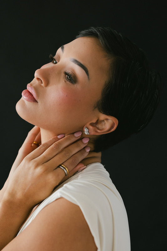 Benoîte - Silver Triple Diamond Cluster Stud Earrings