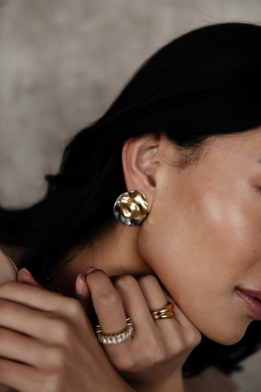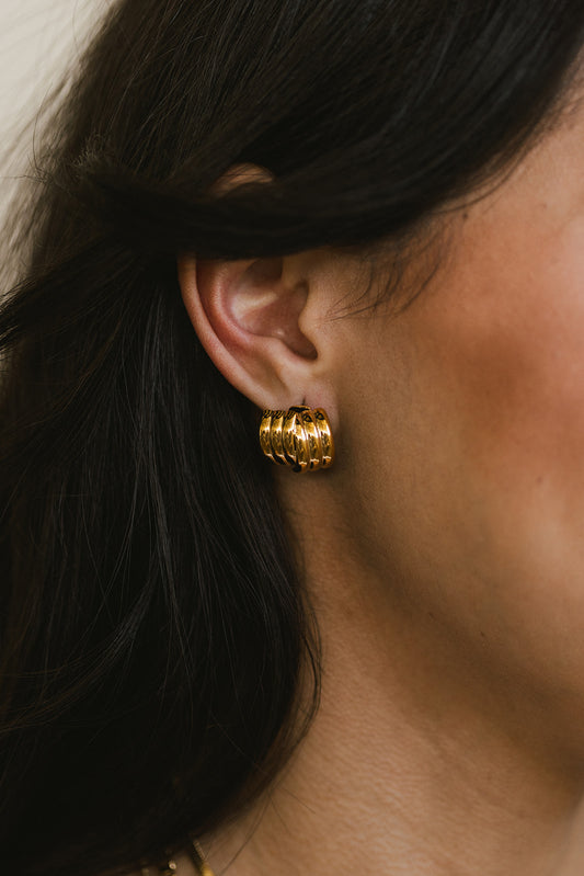 Bellini - Gold Ribbed Teardrop Vintage Earrings