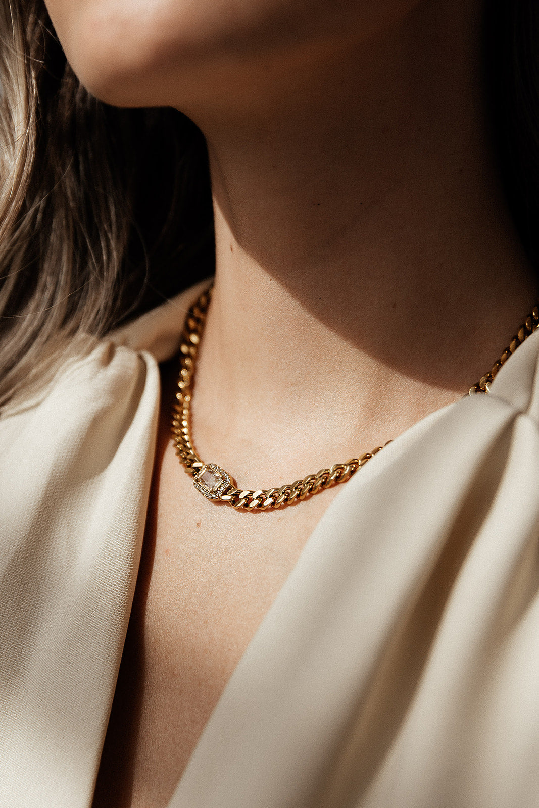 Altair - Cuban Chain Diamond Necklace is a stunning statement piece that will never go out of style. Crafted with water and tarnish resistant materials, this necklace is designed to last a lifetime. Radiate luxury with this timeless and beautiful jewelry piece.