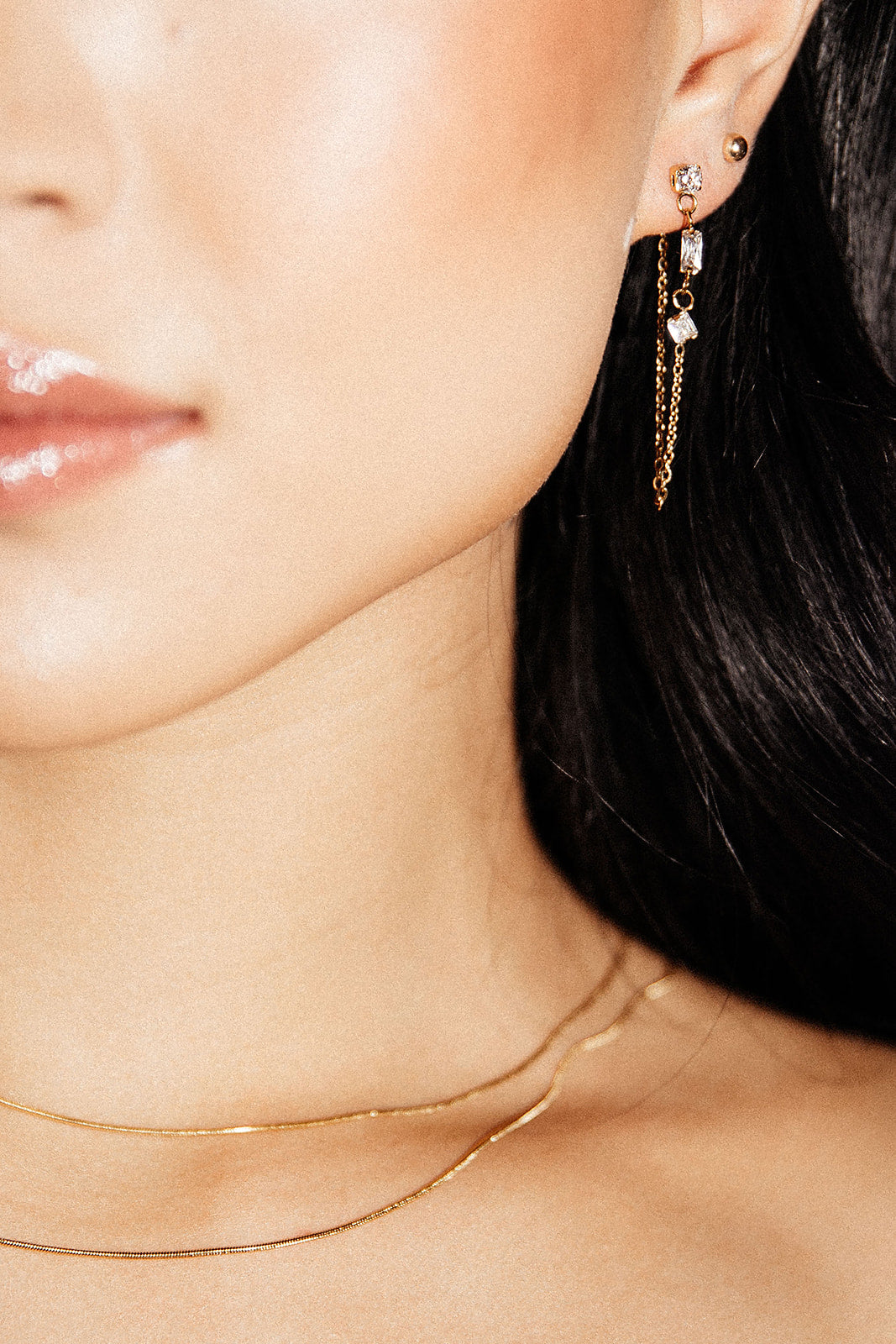 These stunning Atlas - Drop Chain Diamond Earrings are crafted from gold for lasting shine and durability. The earrings feature a chain drop design for a unique, eye-catching look, and are water and tarnish resistant for long-lasting beauty.