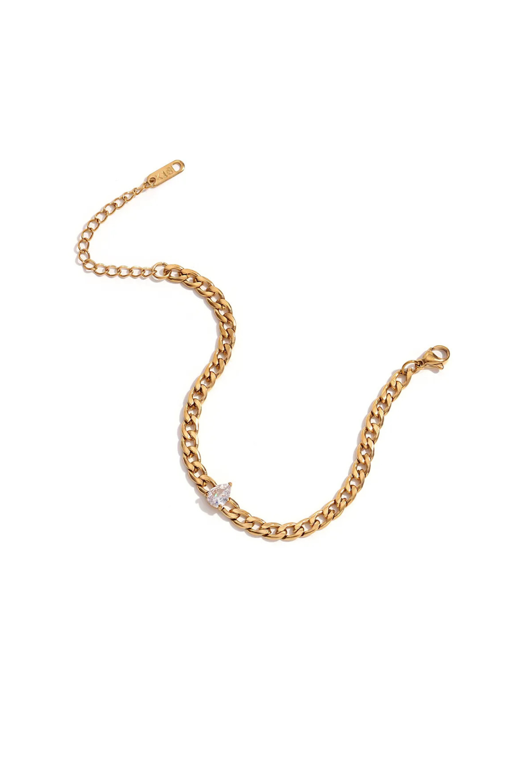 This Aubrey Gold Pear Diamond Curb Chain is the perfect bracelet for any occasion. Crafted with exquisite detail, this chain combines the luxury of gold with the sparkle of diamonds. Elevate your style with this timeless piece that exudes elegance and sophistication.