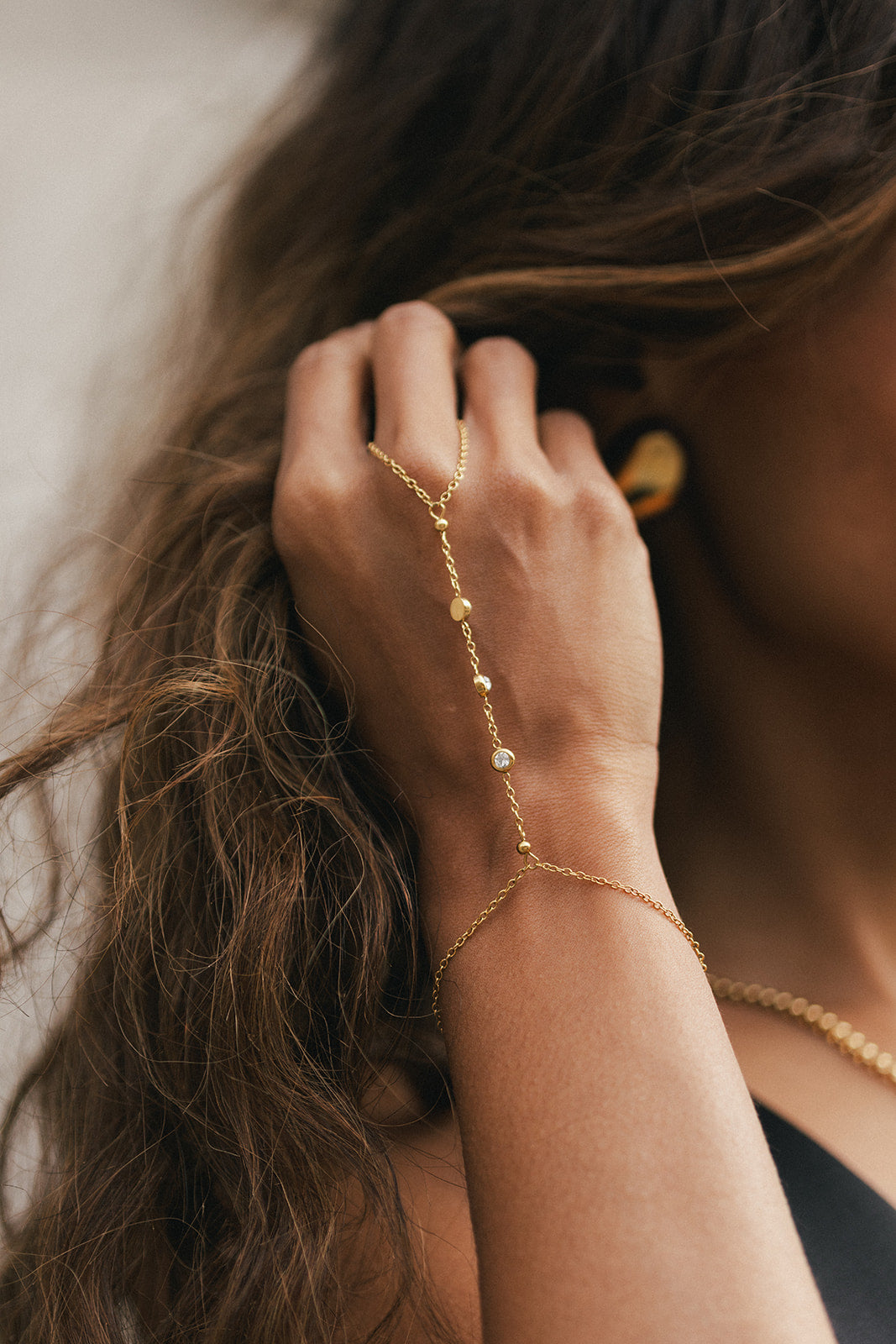 Avery - Gold Three Diamond Hand Chain