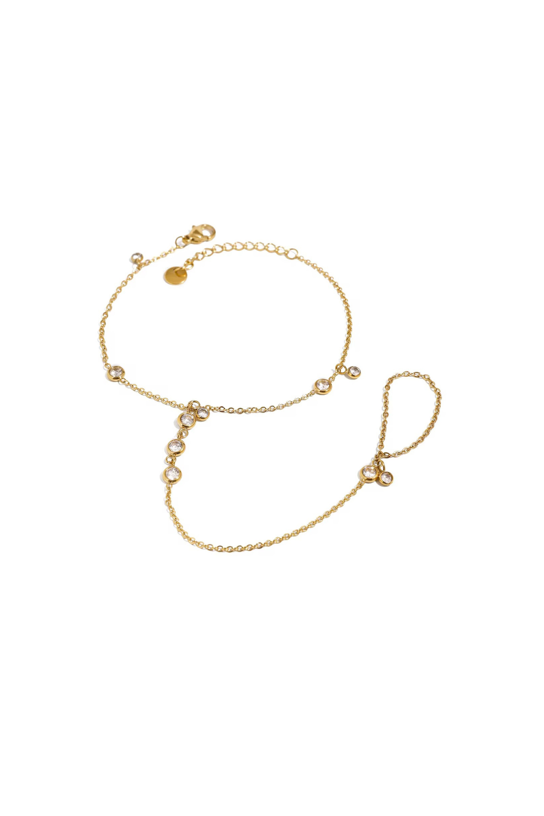 This Cz Hand Chain is a must-have accessory for any fashion-forward individual. Made with stunning stones, this hand chain adds a touch of elegance to any outfit. Elevate your style with this must-have piece.