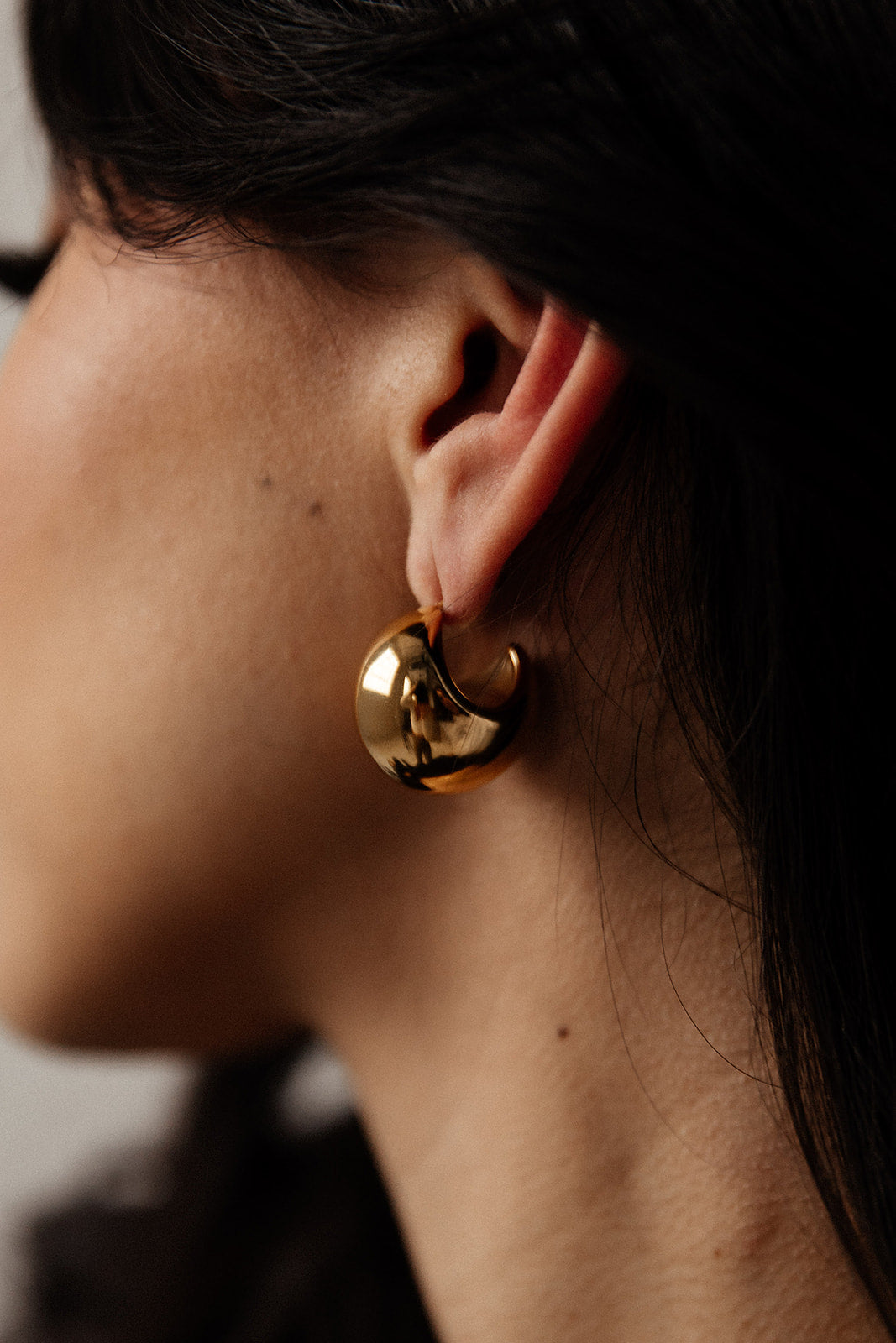 Jules - Gold Round Chunky Earrings are a bold and stylish addition to any outfit. Crafted with a chunky design, these earrings make a statement and add a touch of glamour to your look. Made with high-quality materials and a durable construction, these earrings will be a staple in your collection for years to come. Elevate your style with Jules.