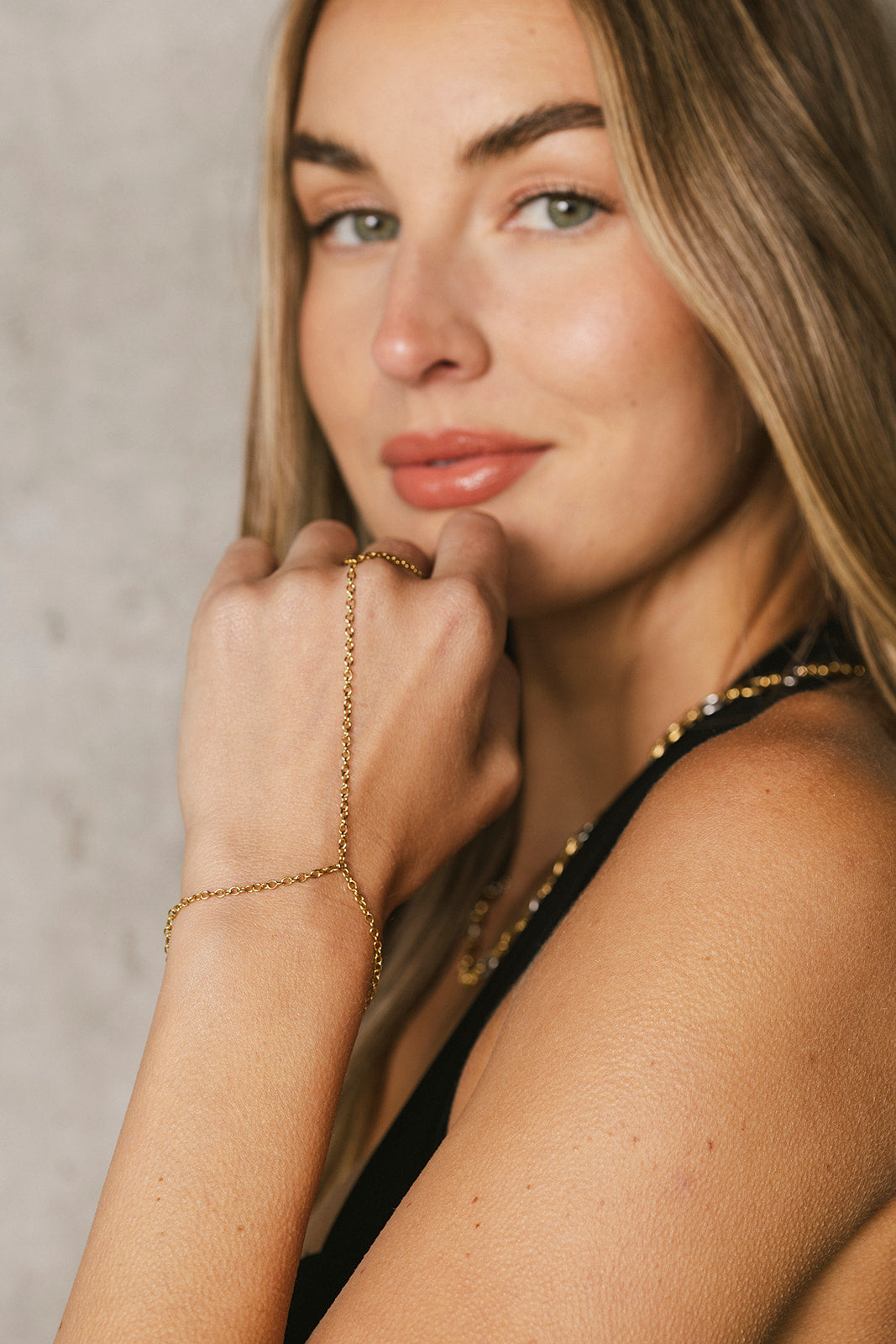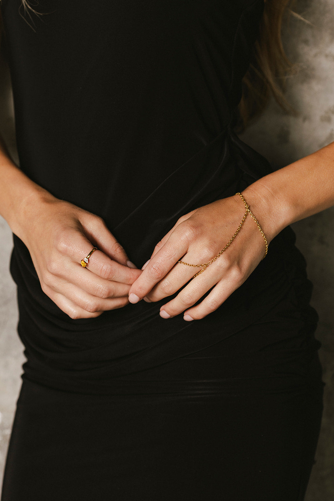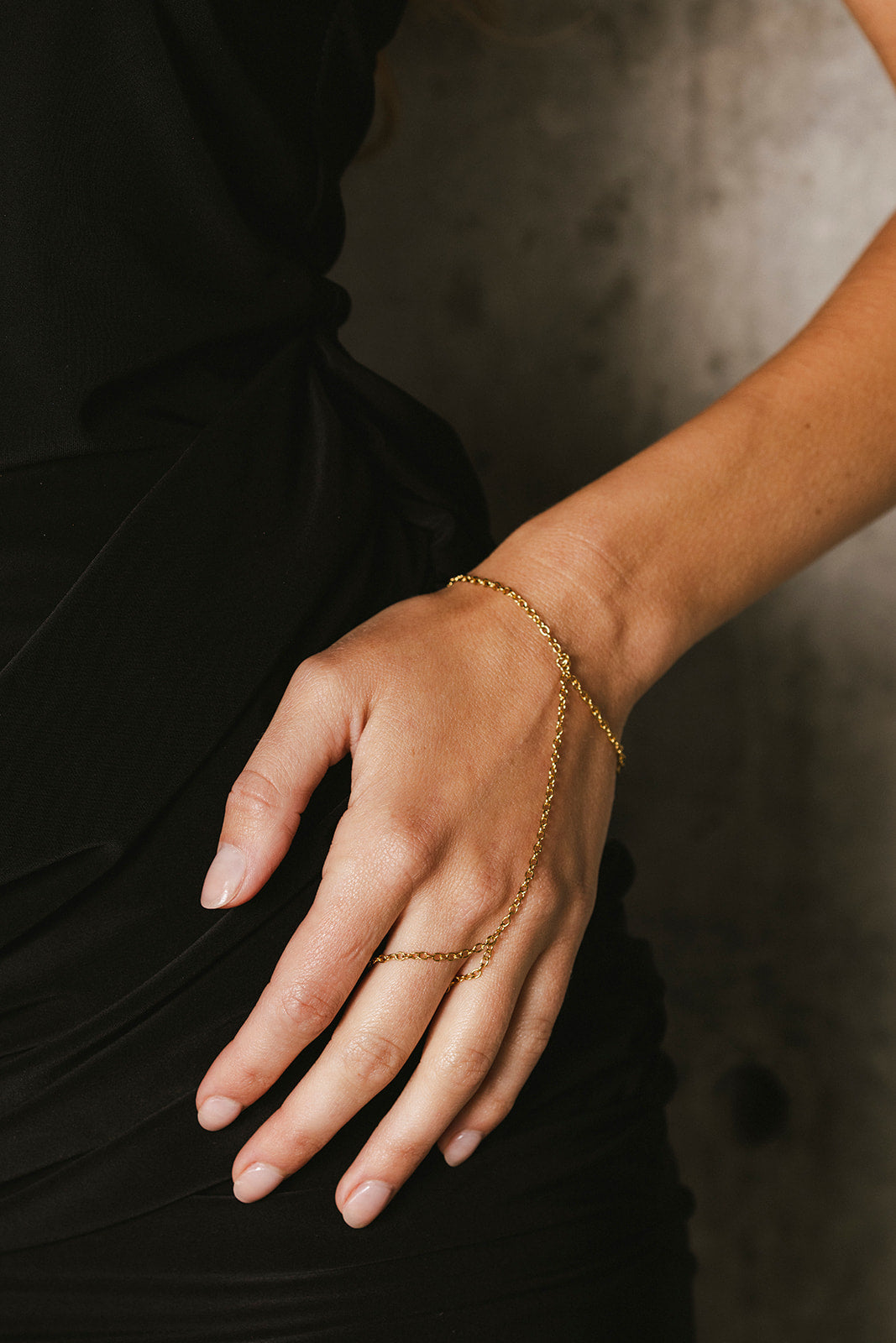Enhance your look with the Nia - Gold Original Hand Chain. This simple yet elegant hand chain can be paired with other pieces to create a unique style. Plus, it is waterproof, making it perfect for any occasion. Elevate your style with this versatile accessory.