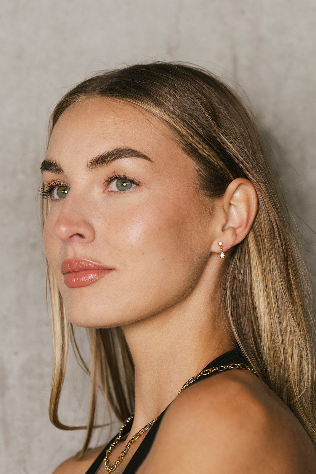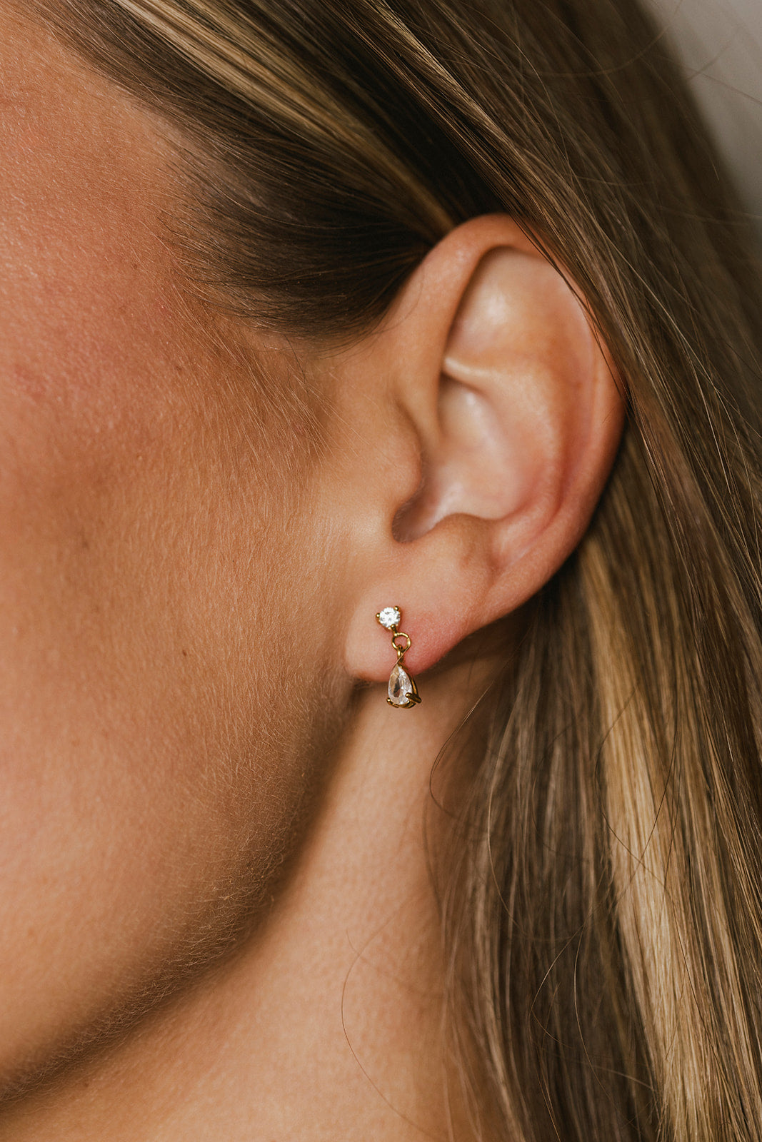 Rémi - Gold Double Diamond Drop Pear Stud Earrings